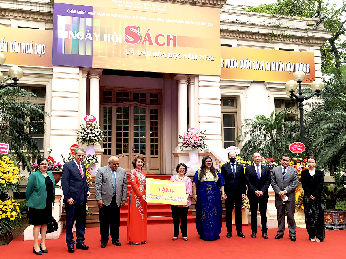 Tại lễ khai mạc Ngày hội sách và văn hóa đọc năm nay, Thư viện Quốc gia Việt Nam đã tiếp nhận sách tài trợ của đại sứ quán các nước nói tiếng Tây Ban Nha tại Việt Nam, đồng thời trao tặng sách của các nhà xuất bản, nhà sách, tổ chức và cá nhân cho trường học, thư viện vùng sâu, vùng xa trên cả nước.