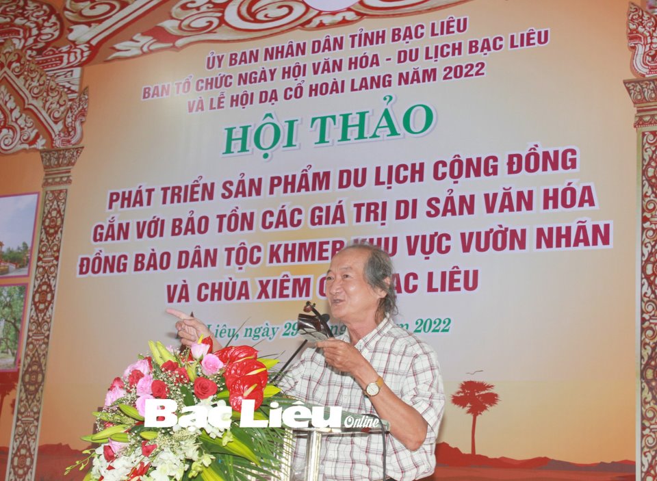 Nội dung thuyết trình của giảng viên Lê Đình Bích tại “Hội thảo phát triển sản phẩm DL cộng đồng gắn với bảo tồn các giá trị di sản văn hóa đồng bào dân tộc Khmer khu vực vườn nhãn và chùa Xiêm Cán Bạc Liêu” khá dài. Tuy nhiên, ông không đọc văn bản viết sẵn. Tất cả là thuyết trình bằng hiểu biết, sự thẩm thấu âm nhạc truyền thống và giá trị của âm nhạc truyền thống khi lồng ghép vào câu chuyện phục vụ cho DL, mà cách thiết thực nhất là trình diễn cho mọi người thưởng thức. Ông nói về sự hấp dẫn của việc giới thiệu âm nhạc truyền thống với du khách, nói đến đâu ông minh họa đến đó bằng chiếc song lang, bộ gõ, ống tiêu (những nhạc cụ của nhiều loại hình âm nhạc truyền thống Việt Nam). Và ông cho rằng, thuyết minh viên DL phải làm được những điều này, chứ không chỉ nói suông!