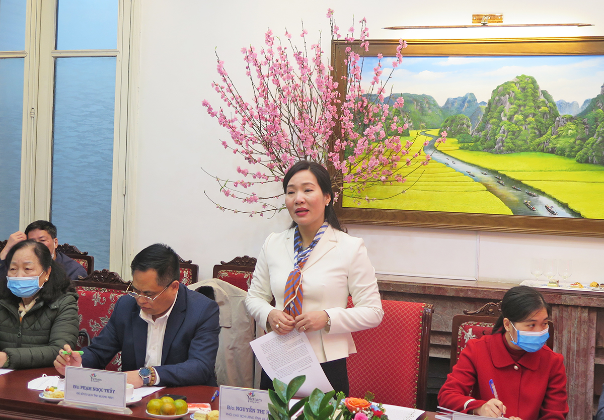 Phó Chủ tịch UBND tỉnh Quảng Ninh Nguyễn Thị Hạnh cho biết, thời gian qua ngành du lịch Quảng Ninh đã phải chịu những ảnh hưởng nặng nề do dịch bệnh, hiện nay chính là thời điểm để Quảng Ninh bứt tốc, khôi phục các hoạt động du lịch. Phó Chủ tịch UBND tỉnh mong muốn Tổng cục Du lịch sẽ định hướng, hỗ trợ ngành du lịch Quảng Ninh trong công tác xúc tiến quảng bá, xây dựng các clip giới thiệu du lịch, kết nối với các đối tác quốc tế để triển khai các hoạt động thu hút khách quốc tế; tổ chức các sự kiện nhằm thu hút du khách; tổ chức các hoạt động liên kết phát triển du lịch, quan tâm hỗ trợ Quảng Ninh thực hiện một số Đề án, quy hoạch và tổ chức các lớp đào tạo nguồn nhân lực cho ngành du lịch Quảng Ninh.