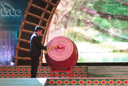 Thứ trưởng Bộ VHTTDL Huỳnh Vĩnh Ái đánh trống khai mạc ngày hội