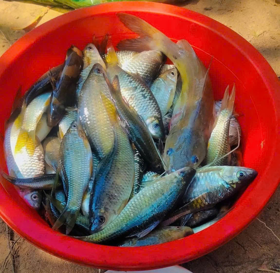 Cá sông thường được nấu canh chua hoặc chế biến với kiến vàng, tạo nên những món ăn đặc trưng.
