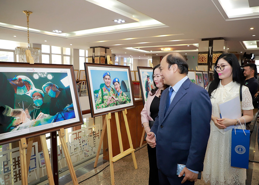 Thứ trưởng Thường trực Bộ VHTTDL Lê Hải Bình tham quan không gian trưng bày ảnh bên lề Diễn đàn