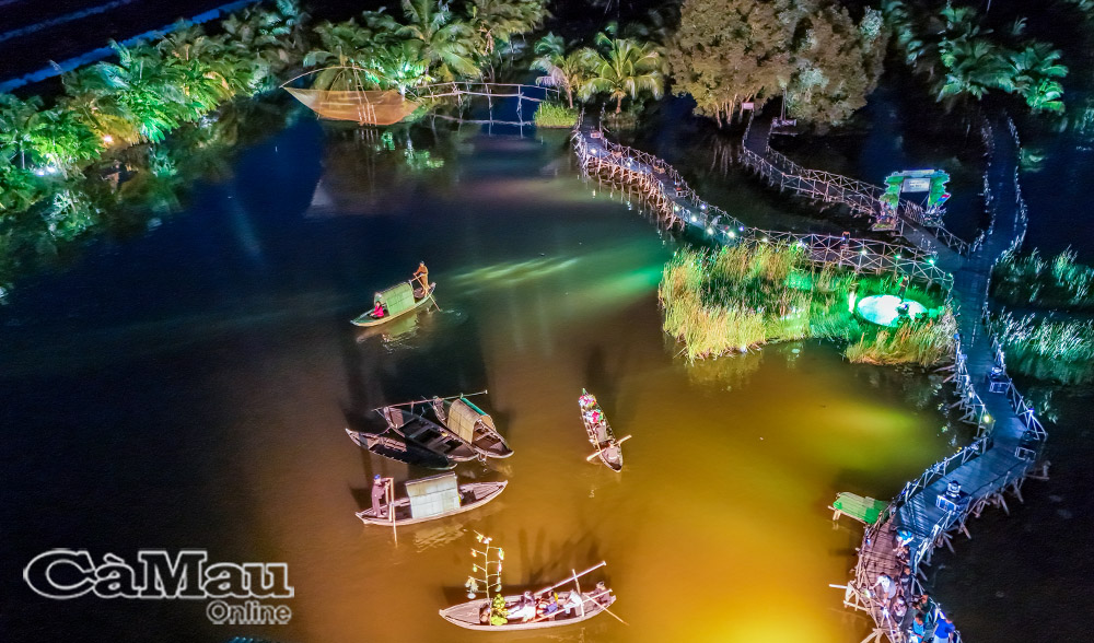 Đờn ca tài tử trên sông về đêm tại Khu Du lịch sinh thái Cà Mau Eco.