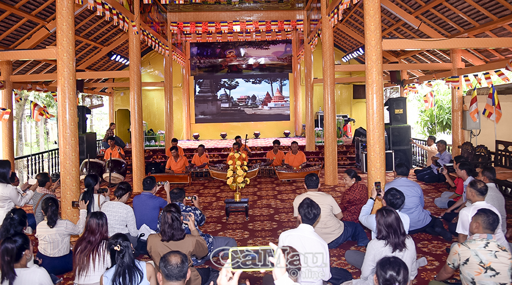 Đội nghệ thuật chùa Xiêm Cán, phường Hiệp Thành, biểu diễn phục vụ khách du lịch.
