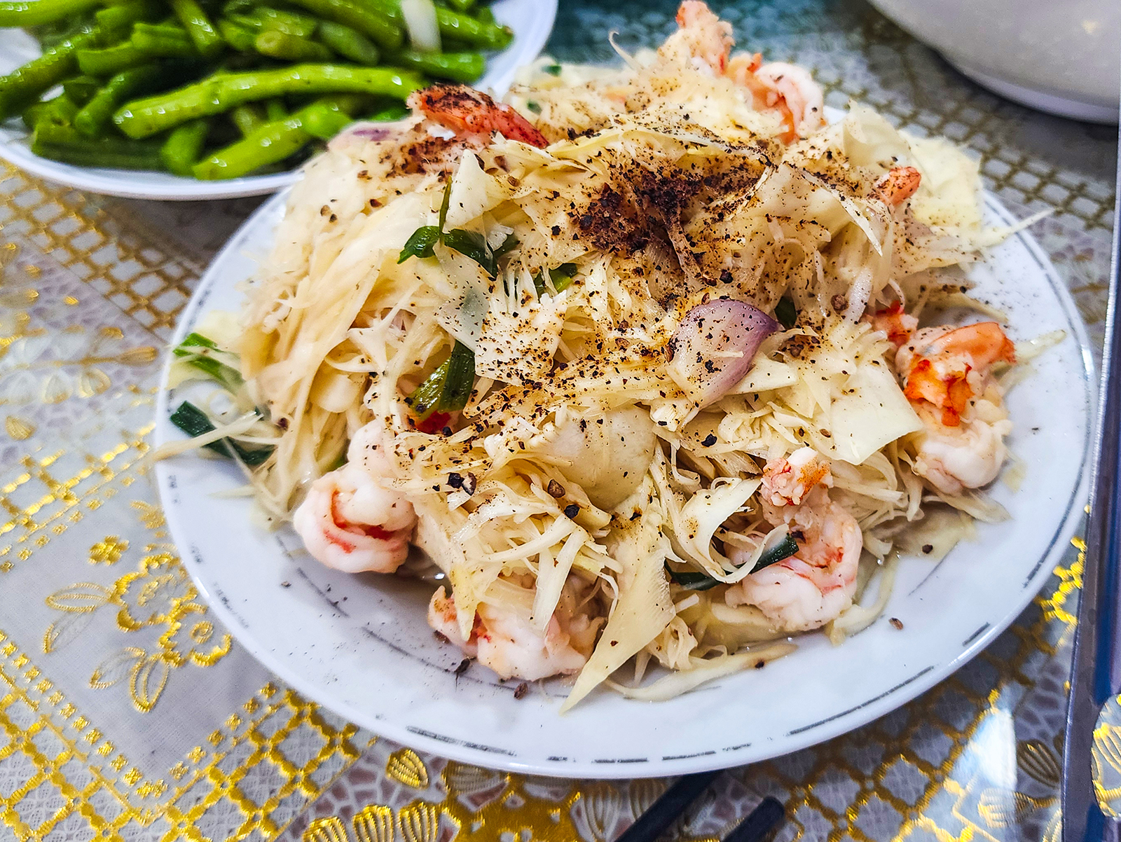 Củ hủ khóm xào tôm hấp dẫn. Ảnh: Thủy Tiên