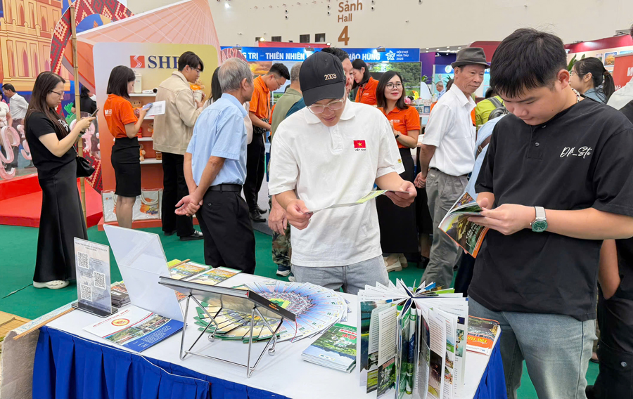 Đông đảo khách tham quan hào hứng "check-in" tại không gian du lịch do Cục Du lịch Quốc gia Việt Nam tổ chức (Ảnh: TITC)
