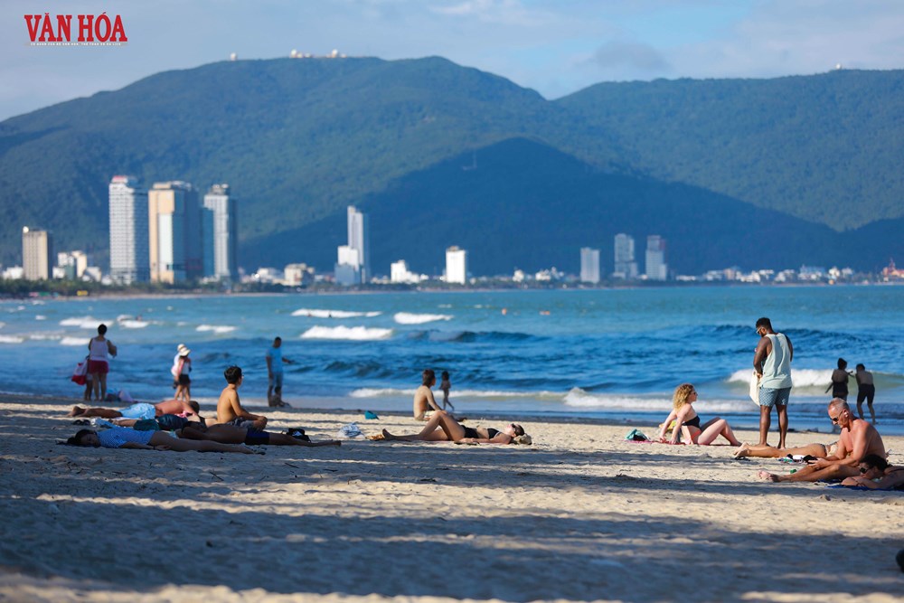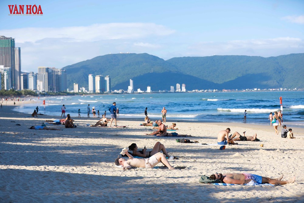 Nhiều khách quốc tế thư giãn trên bãi biển Mỹ Khê, chiều 9.11