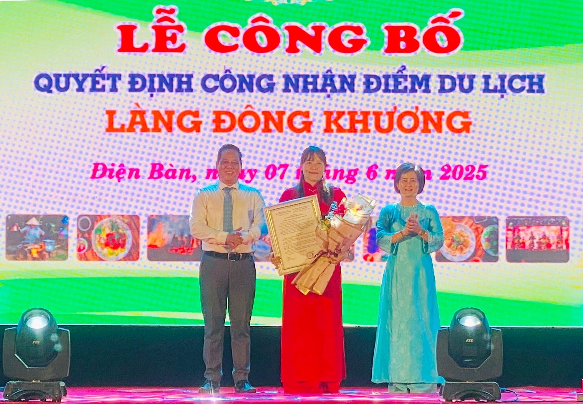 Trao quyết định công nhận làng Đông Khương là điểm du lịch. Ảnh: Khánh Linh