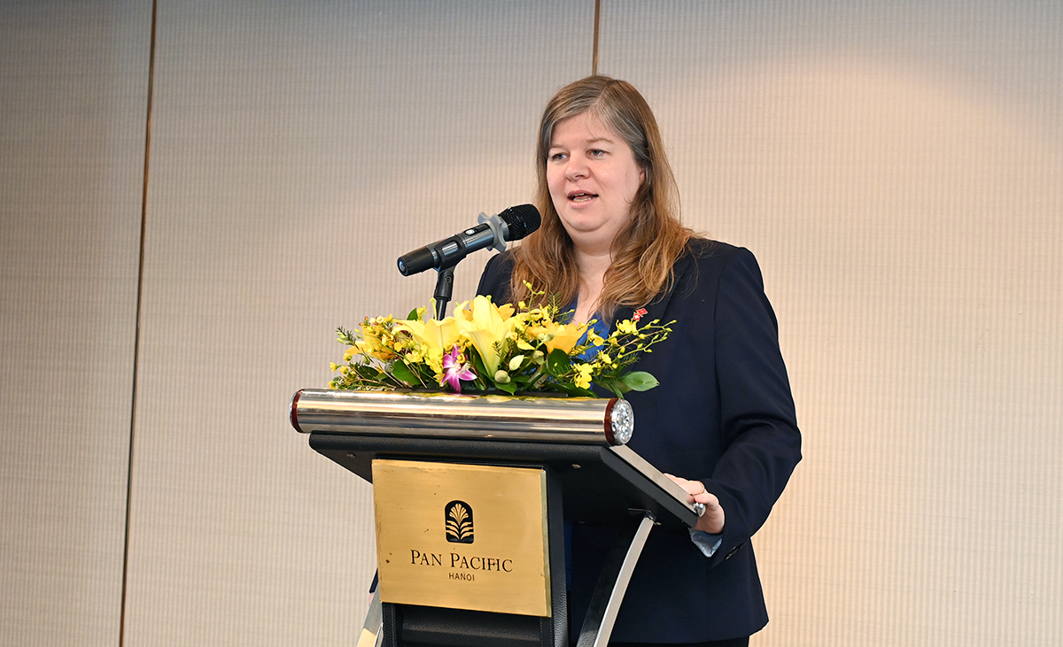 Bà Sibylle Bachmann - Trưởng đại diện Tổng cục Kinh tế Liên bang Thụy Sỹ tại Việt Nam phát biểu tại sự kiện. Ảnh: TITC