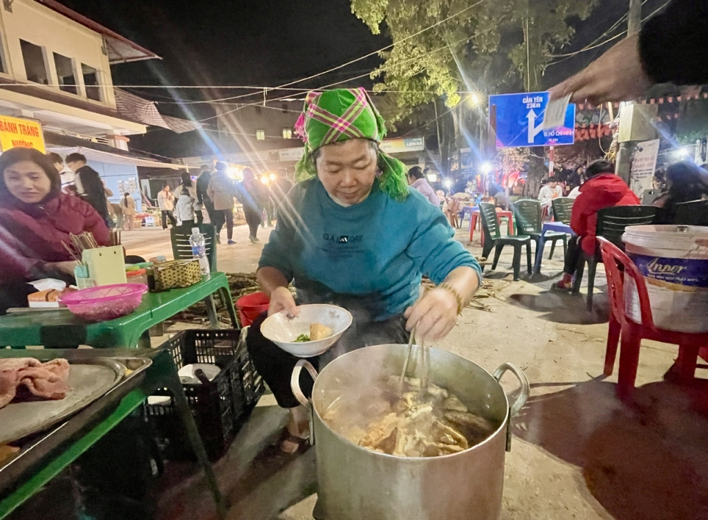 Buổi tối, giữa ánh đèn và dòng người tản bộ, những bát đậu nhồi thịt với nước xương bốc khói nghi ngút trở thành món ăn vặt được ưa chuộng. Người già, trẻ nhỏ quây quanh, vừa ăn vừa trò chuyện. Món ăn dân dã từ bản làng bỗng trở thành điểm nhấn ẩm thực nơi phố thị.