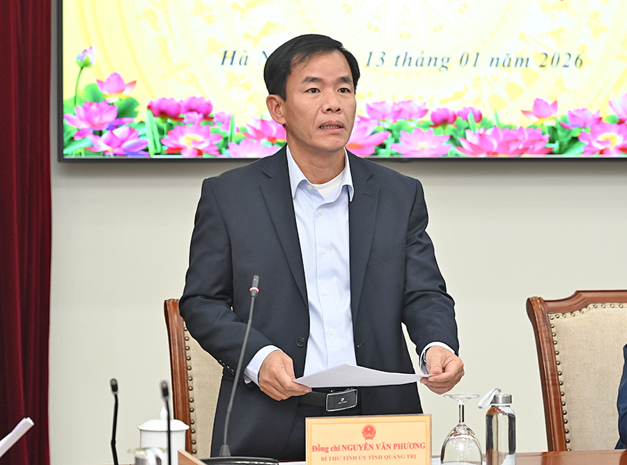 Trên cơ sở những kết quả đạt được và yêu cầu nhiệm vụ trong giai đoạn mới, Bí thư tỉnh ủy Quảng Trị Nguyễn Văn Phương đề nghị lãnh đạo Bộ VHTTDL quan tâm chỉ đạo và hỗ trợ tỉnh trong việc triển khai Đề án xây dựng Bảo tàng “Ký ức chiến tranh và khát vọng Hòa bình”; Lễ hội Vì Hòa bình năm 2026; Đăng cai tổ chức Giai đoạn II Bóng chuyền vô địch quốc gia năm 2026; Đăng cai Năm Du lịch Quốc gia 2027.