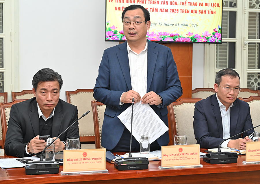 Về đề xuất đăng cai tổ chức Năm Du lịch Quốc gia 2027, Cục trưởng Nguyễn Trùng Khánh cho biết từ tháng 9/2025, Bộ VHTTDL đã có văn bản gửi tất cả Tỉnh ủy, Thành ủy, UBND các tỉnh, thành phố đề nghị đăng ký đăng cai tổ chức Năm Du lịch Quốc gia 2026 và các năm tiếp theo trong giai đoạn 2026-2030. Chỉ trong thời gian ngắn, tỉnh Quảng Trị đã có công văn gửi Bộ VHTTDL đề nghị được đăng cai tổ chức Năm Du lịch Quốc gia 2027 và hôm nay lãnh đạo tỉnh cũng đã có ý kiến đề xuất ngay tại cuộc họp, thể hiện sự quan tâm và cam kết mạnh mẽ của Tỉnh ủy, UBND tỉnh, các sở ban ngành của tỉnh Quảng Trị tổ chức sự kiện quan trọng này. Cục Du lịch Quốc gia Việt Nam ủng hộ đề xuất của tỉnh và đề nghị UBND tỉnh Quảng Trị chỉ đạo các cơ quan chức năng của tỉnh phối hợp với Cục Du lịch Quốc gia Việt Nam để xây dựng đề án và báo cáo lãnh đạo Bộ xem xét, quyết định.