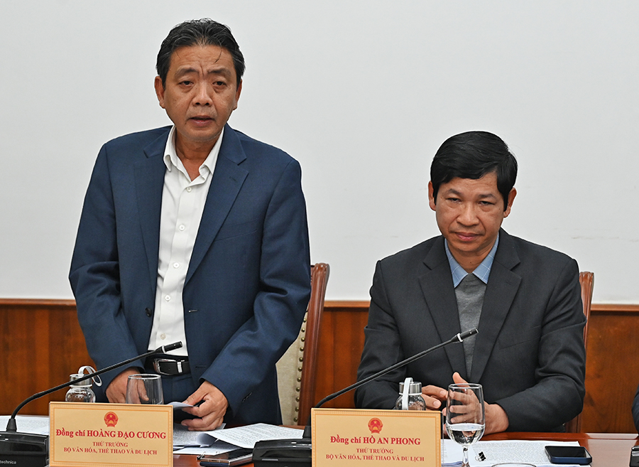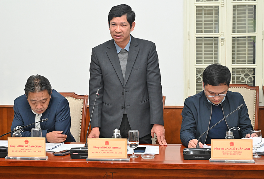 Thứ trưởng Bộ VHTTDL Hồ An Phong phát biểu tại buổi làm việc (Ảnh: TITC)