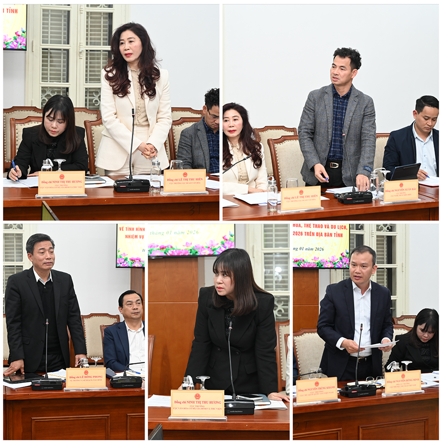 Lãnh đạo các Cục, Vụ, đơn vị thuộc Bộ phát biểu tại buổi làm việc (Ảnh: TITC)