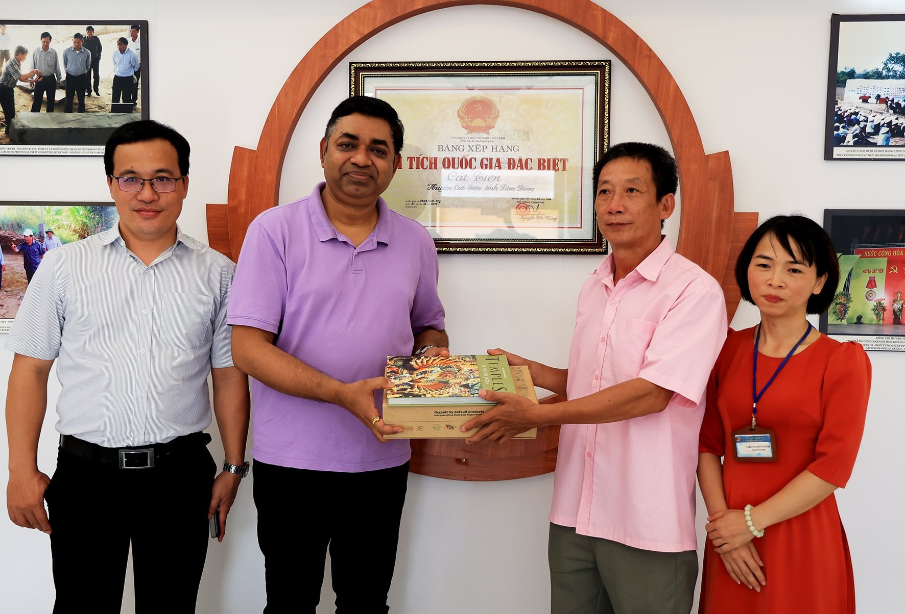 Nguyên Tổng Lãnh sự Ấn Độ tại TP Hồ Chí Minh tham quan nhà trưng bày trong 1 lần đến Di tích khảo cổ Cát Tiên.
