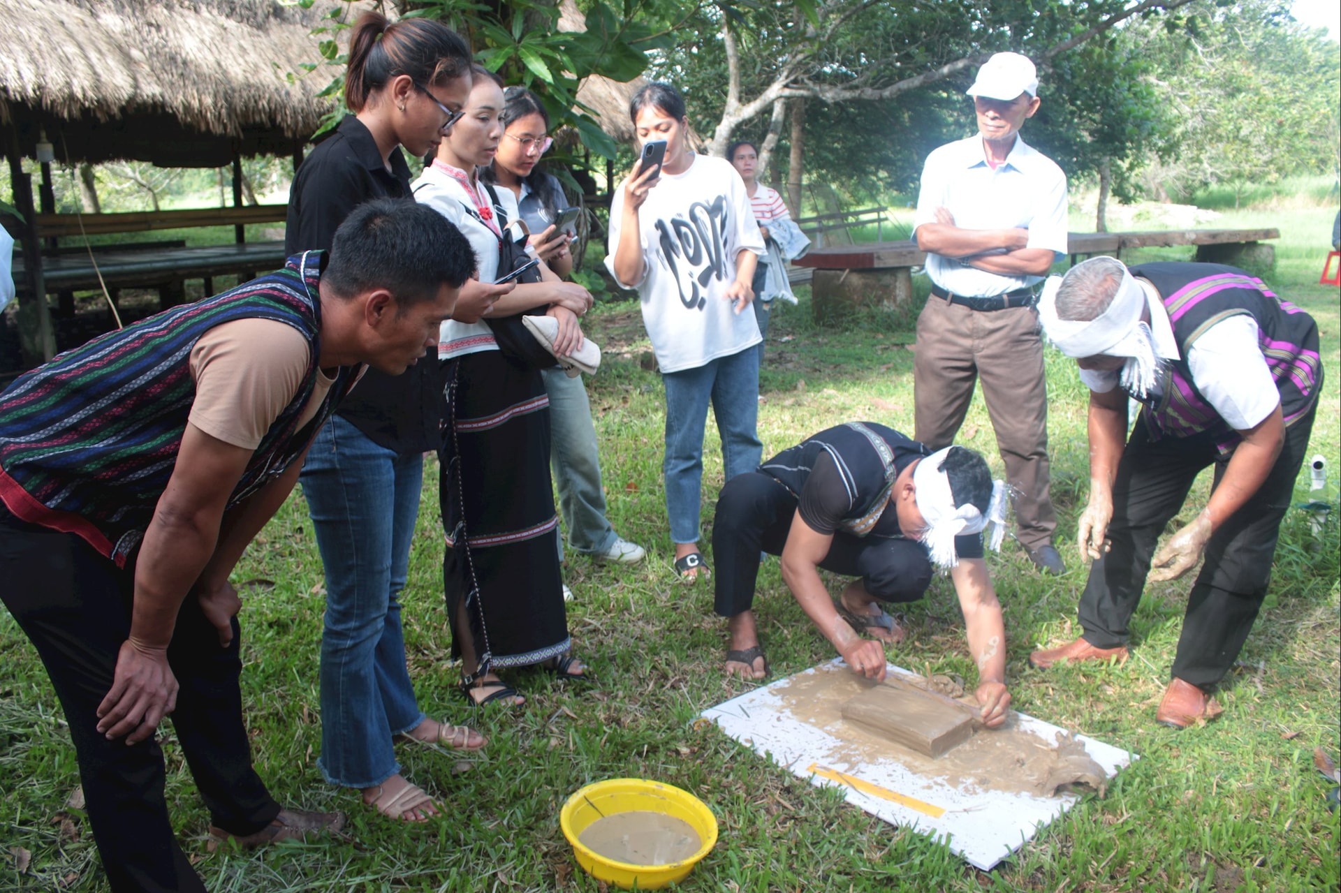 Trải nghiệm làm gạch xây đền tại Di tích khảo cổ Cát Tiên