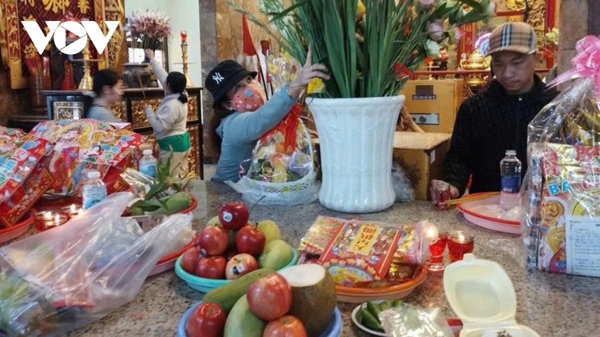 Người dân về Miếu Bà Chúa Xứ để dâng phẩm vật và cầu an.