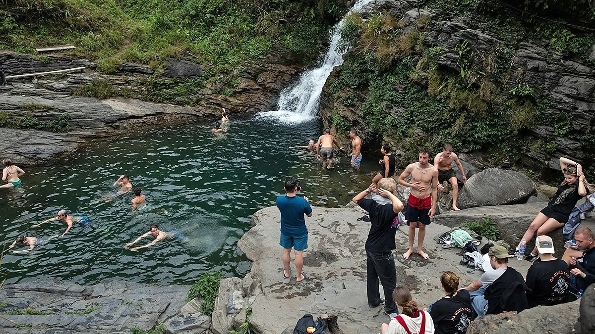 Du khách thường dừng chân nghỉ ngơi, thư giãn bản thân tại thác nước ở Du Già trước khi bắt đầu hành trình ngày cuối cùng trở về thành phố.