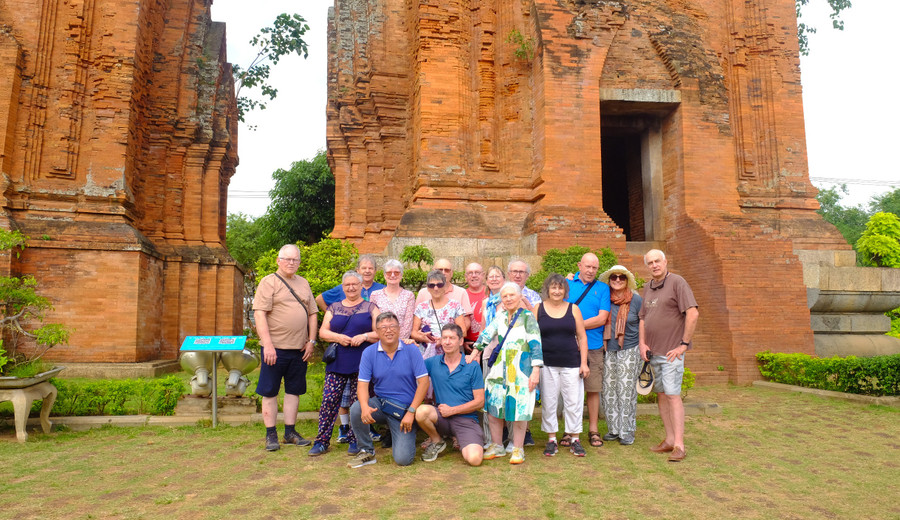 Đoàn du khách đến từ Pháp tham quan tháp Đôi. Ảnh: Đ.N