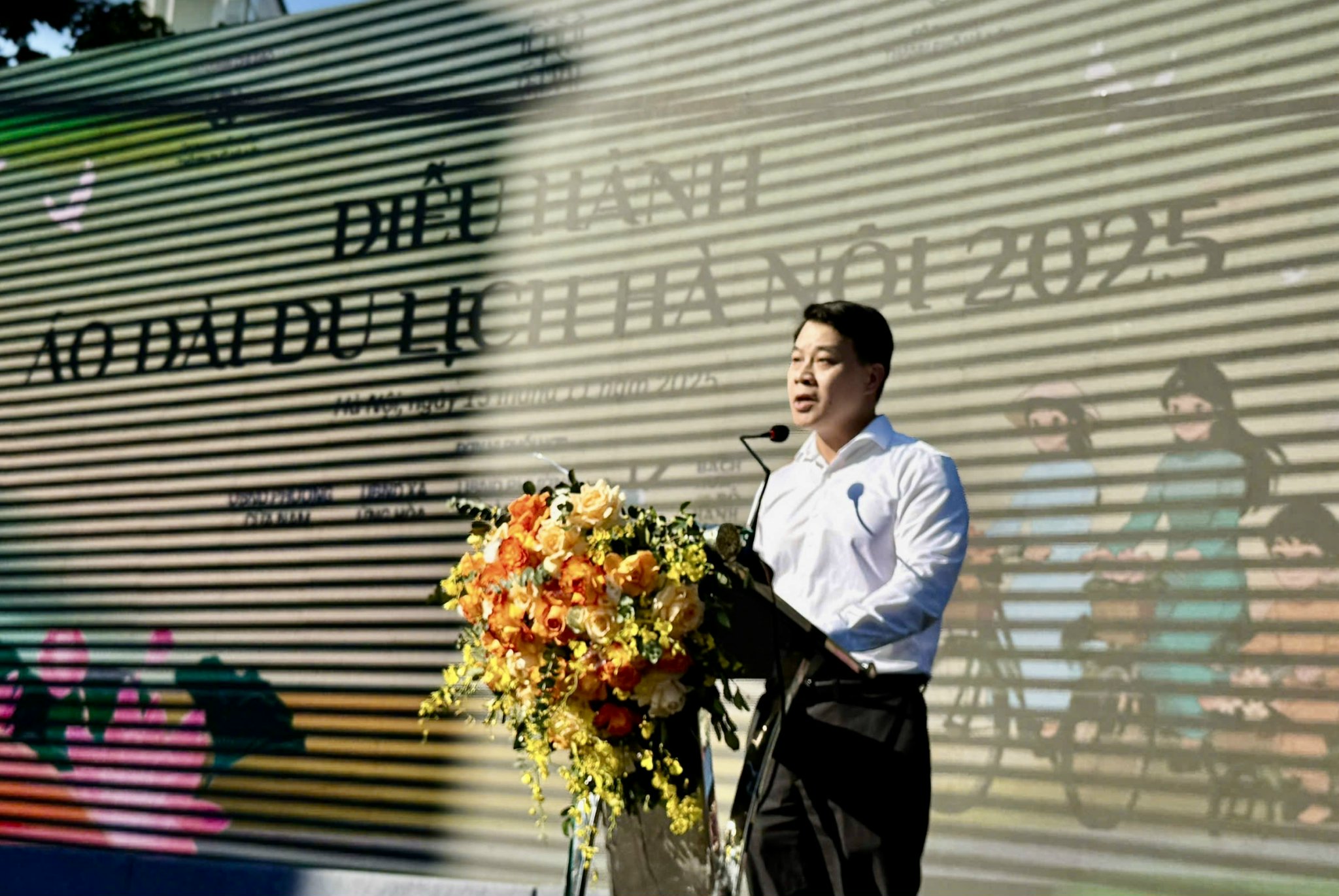 Ông Nguyễn Trần Quang, Phó Giám đốc Sở Du lịch Hà Nội phát biểu khai mạc chương trình diễu hành