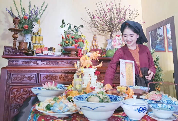 Giới thiệu mâm cỗ Tết tại chương trình Happy Tết do ngành du lịch Hà Nội tổ chức. Ảnh: Hoài Nam