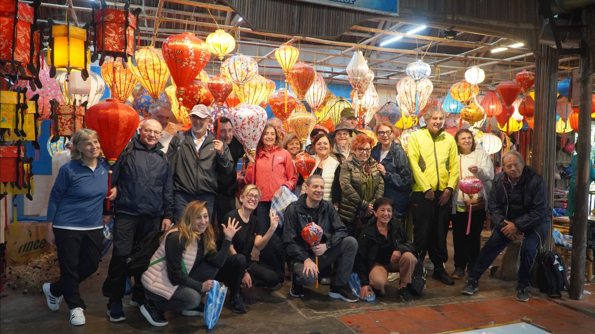 Đoàn du khách Ý trải nghiệm workshop làm lồng đèn truyền thống. Ảnh: Tấn Châu