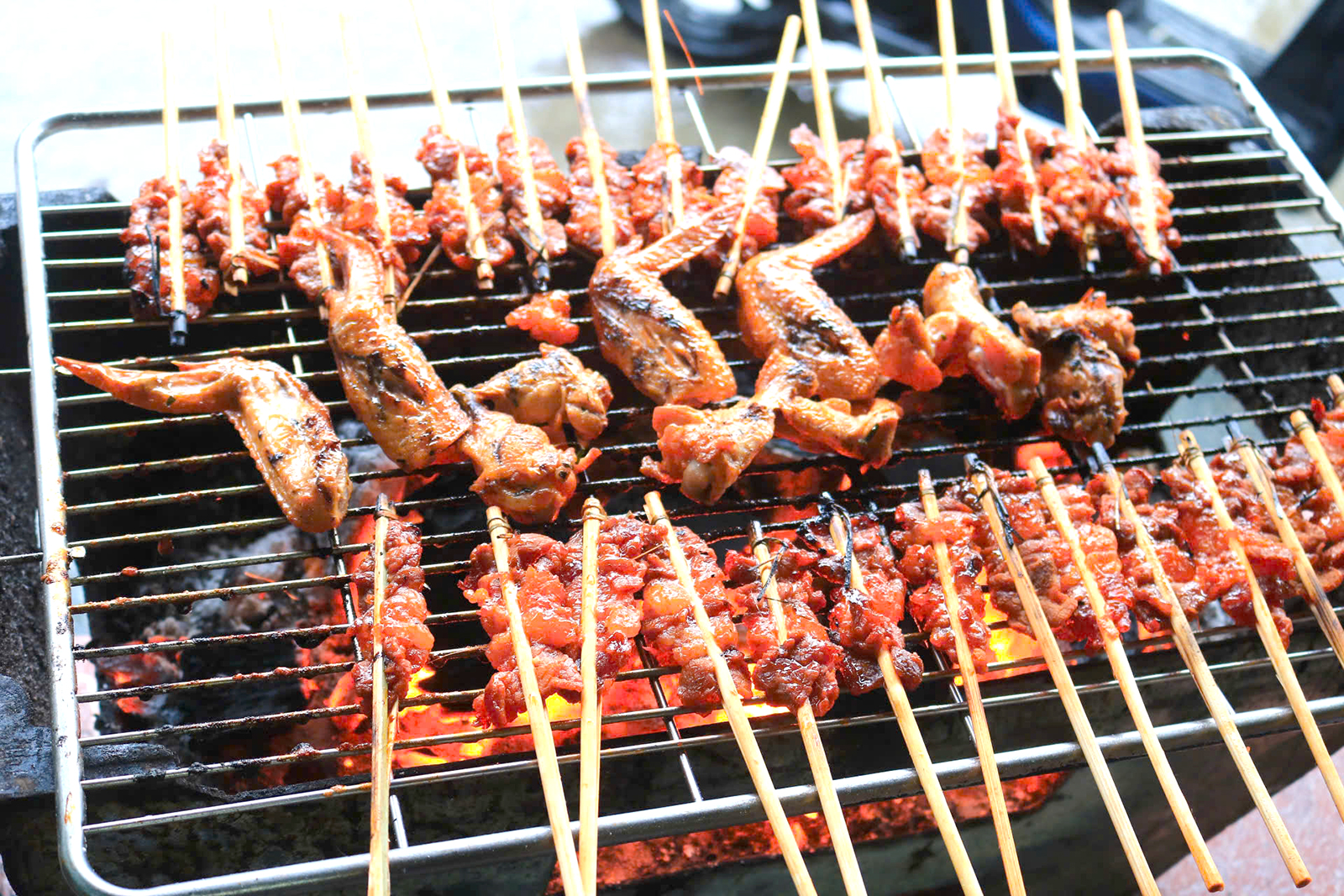 Dừng chân tại quán gỏi đu đủ Kim Sin, ngoài món gỏi đu đủ, thực khách còn được tha hồ thưởng thức các món ăn kèm khác, như: Bò nướng, chân gà nướng, ốc luộc lá chúc thơm lừng.