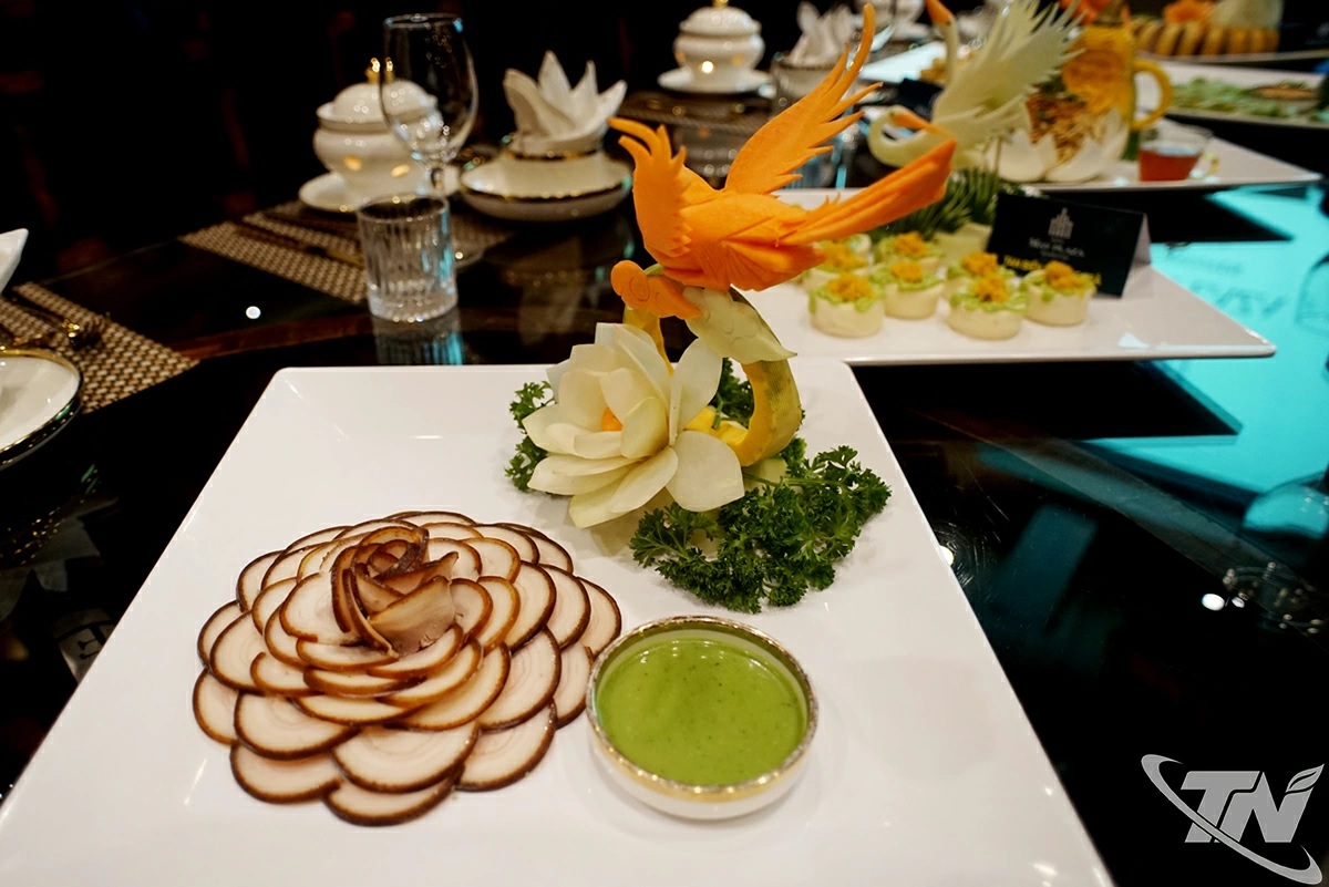 Đó là khoảnh khắc khiến người ăn phải chậm lại, cảm nhận rất rõ hơn sự tinh tế trong cách kết hợp các nguyên liệu. Ngoài ra “Ẩm thực trà Xuân” còn có các món như “Mì trà xanh sốt sâm Cung Bảo”, “Súp lơ xào nấm hương”… Bữa ăn khép lại bằng “Canh hoa trà” thanh nhẹ, giúp cân bằng vị giác. Tráng miệng là “Panna cotta trà xanh” và chén trà Thái, mang lại cảm giác tỉnh táo, dễ chịu.