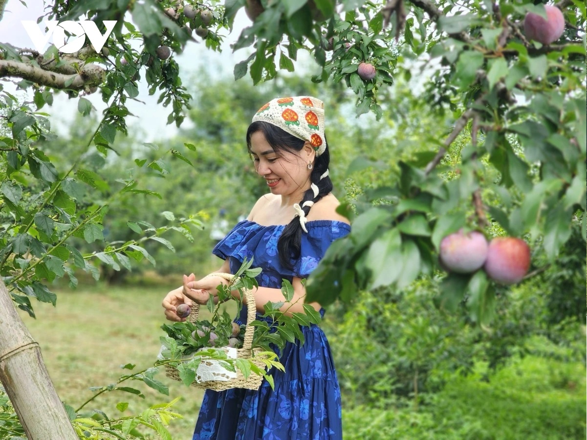 Du khách đắm mình trong khung cảnh thiên nhiên nên thơ mùa hoa mận.
