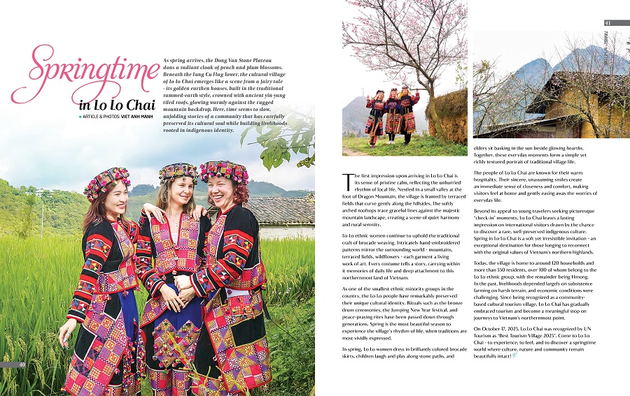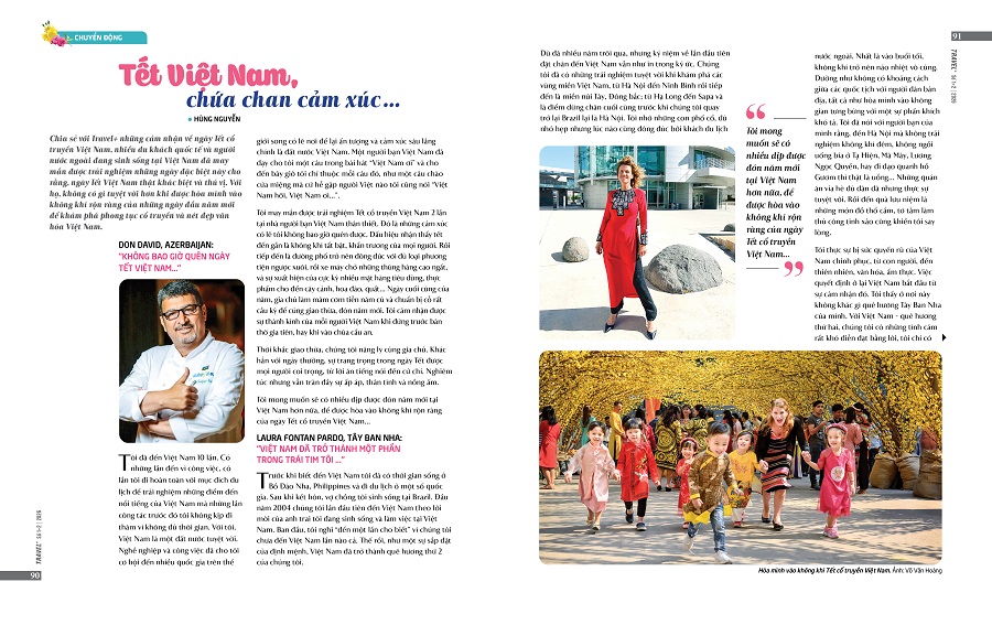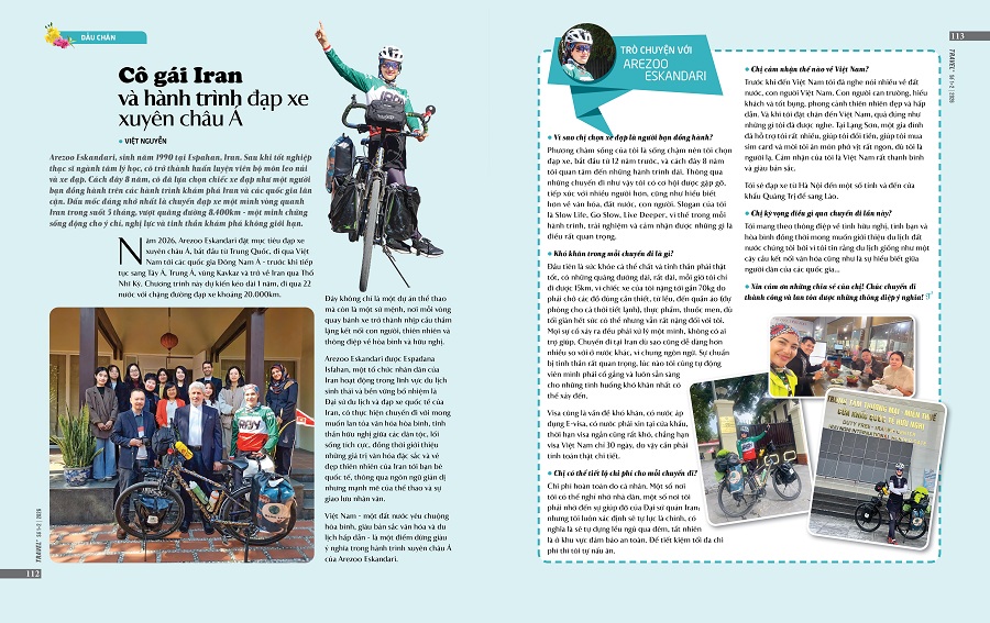 Cũng trong Ấn phẩm đặc biệt này, bạn đọc sẽ được gặp gỡ những nhân vật truyền cảm hứng như NSND Diệu Hương - người đưa âm nhạc truyền thống trở lại gần hơn với công chúng; nhà văn Di Li với những trang du ký thấm đẫm trải nghiệm; du khách Don David (Azerbaijan) cùng những ký ức khó quên về Tết Việt hay Arezoo Eskandari - cô gái Iran trên hành trình đạp xe xuyên châu Á... mang theo tinh thần khám phá và kết nối không biên giới…