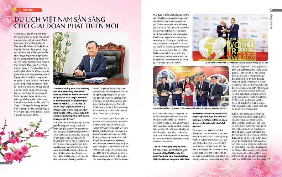 Đặc biệt, trả lời phỏng vấn Travel+ nhân dịp đầu năm mới 2026, TS. Nguyễn Trùng Khánh, Cục trưởng Cục Du lịch Quốc gia Việt Nam (Bộ Văn hóa Thể thao và Du lịch) cho biết, những kết quả thực hiện các chỉ tiêu của ngành Du lịch thời gian qua không chỉ là những con số mà còn mang thông điệp rất ý nghĩa. Đó là sự chuyển biến trong nhận thức và hành động với một tâm thế mới, cảm hứng mới để chuyển sang một giai đoạn phát triển cao hơn, tầm vóc hơn.