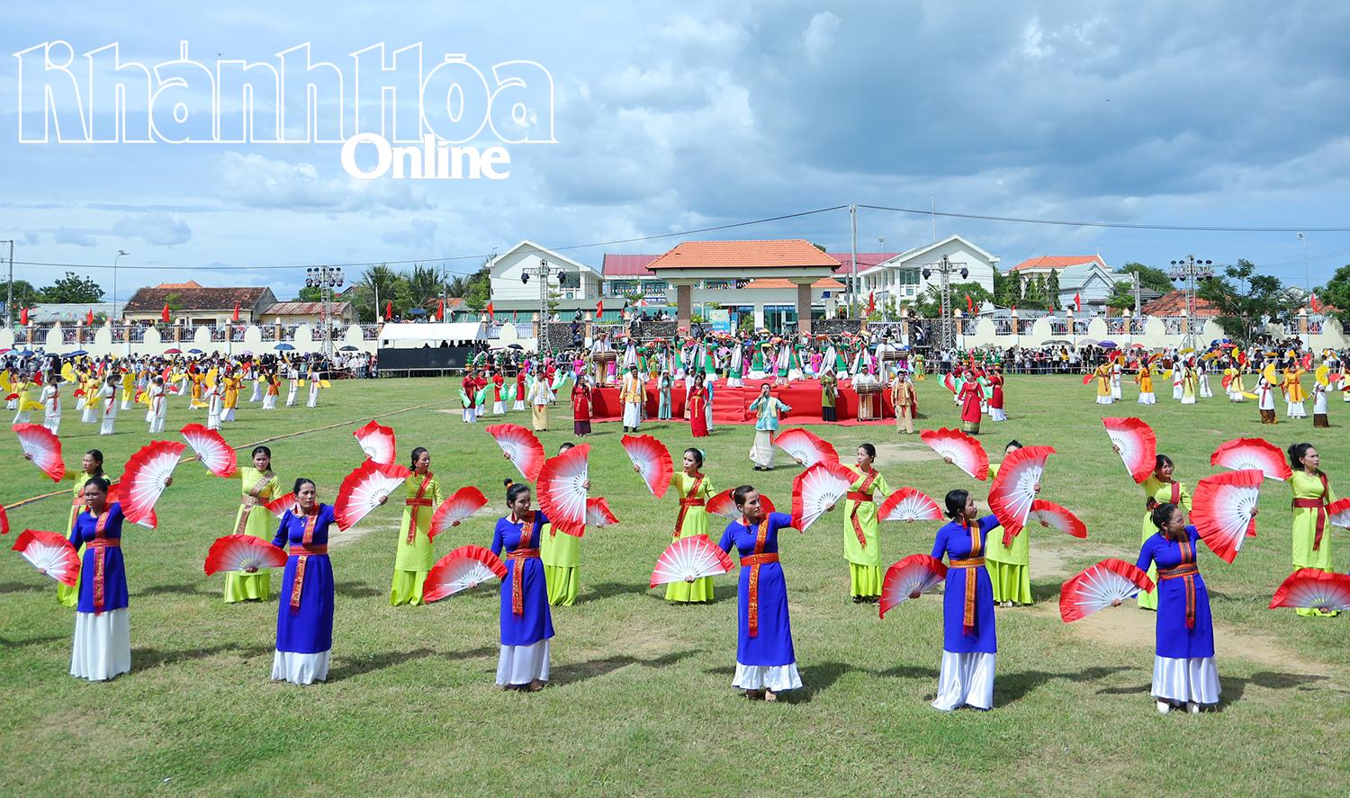 Màn biểu diễn múa quạt của đồng bào Chăm.