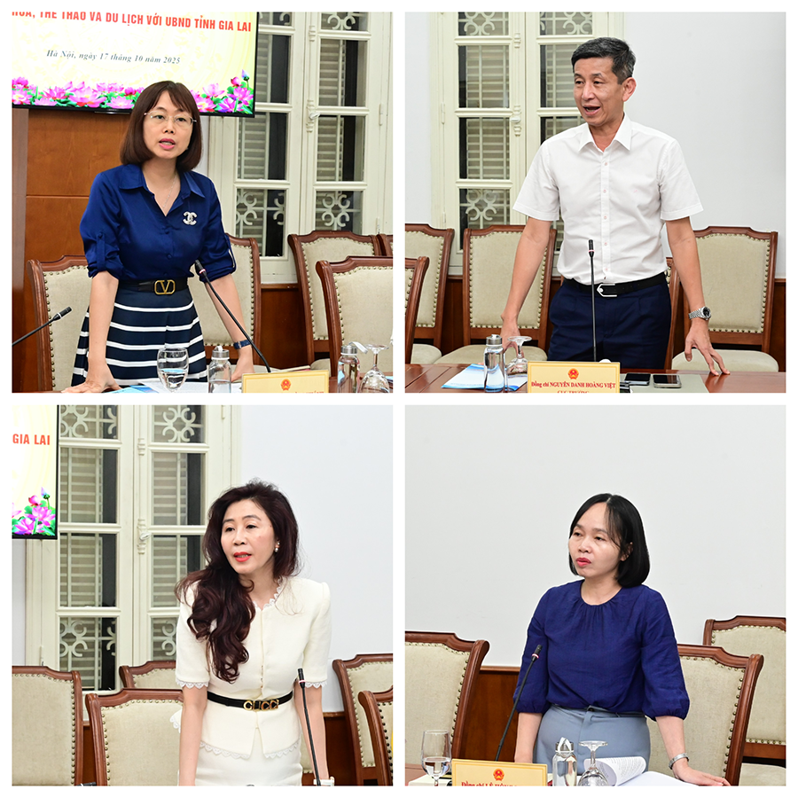Tại buổi làm việc, lãnh đạo Cục Du lịch Quốc gia Việt Nam, Cục Di sản văn hoá, Vụ Kế hoạch tài chính, Cục Thể dục thể thao Việt Nam cũng đã cho ý kiến liên quan đến công tác ngành văn hoá, thể thao và du lịch và trao đổi về một số kiến nghị, đề xuất của tỉnh Gia Lai.