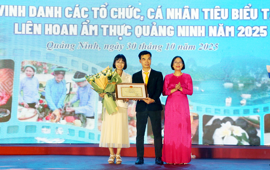 Phó Cục trưởng Phan Linh Chi trao giải đặc biệt tại Liên hoan ẩm thực Quảng Ninh năm 2025 (Ảnh: Báo Quảng Ninh)