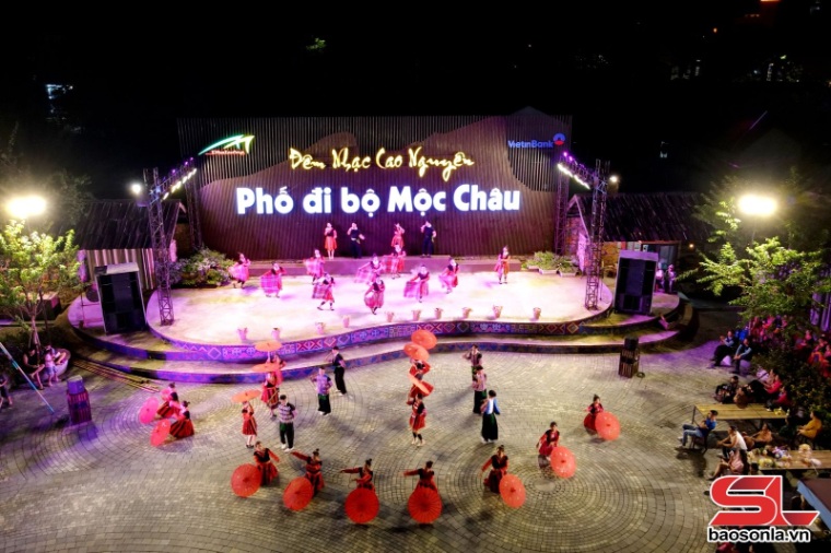 Biểu diễn văn hóa dân tộc tại Phố đi bộ Mộc Châu.