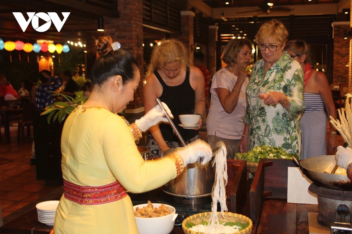 Du khách thưởng thức ẩm thực Chăm tại khu nghỉ dưỡng ở Mũi Né