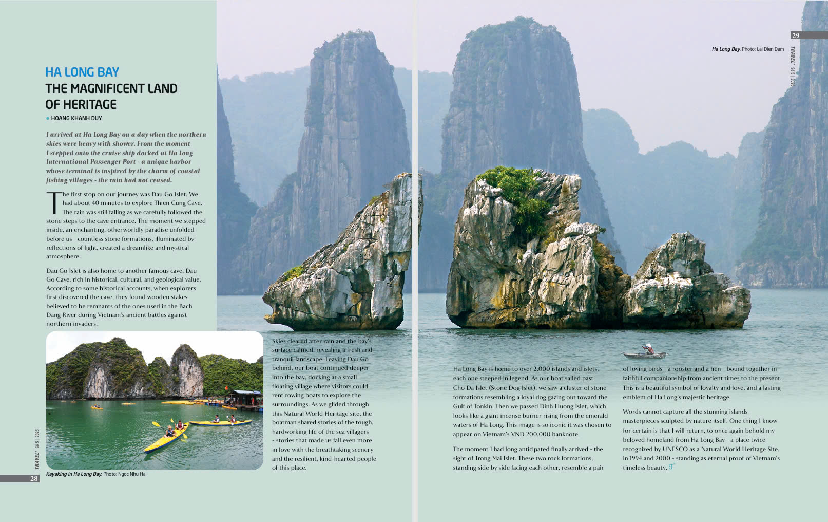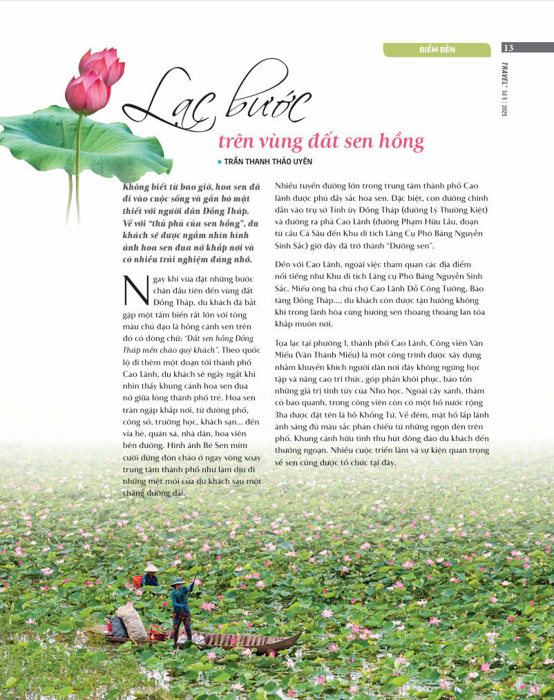 Ấn phẩm Travel+ tháng 5/2025 giới thiệu chùm bài về các điểm đến du lịch mùa hạ như làng Sen - quê hương của Bác Hồ, vịnh Hạ Long - Di sản Thiên nhiên thế giới, Vũng Tàu - điểm đến nghỉ dưỡng cuối tuần, Đồng Tháp - vùng đất của sen hồng…