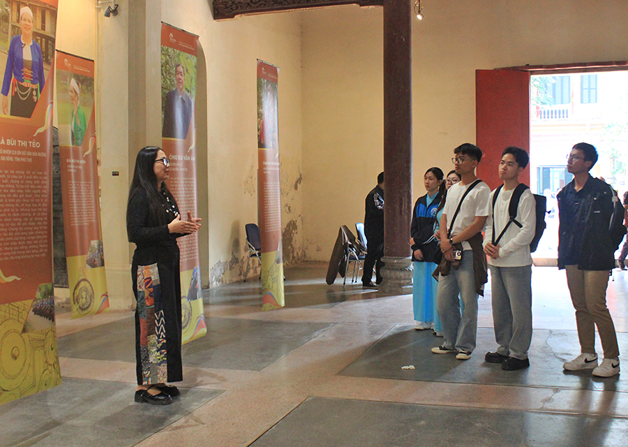 Sinh viên từ các trường đại học Hà Nội tới tham quan và trải nghiệm tại không gian trưng bày (Ảnh: TITC)
