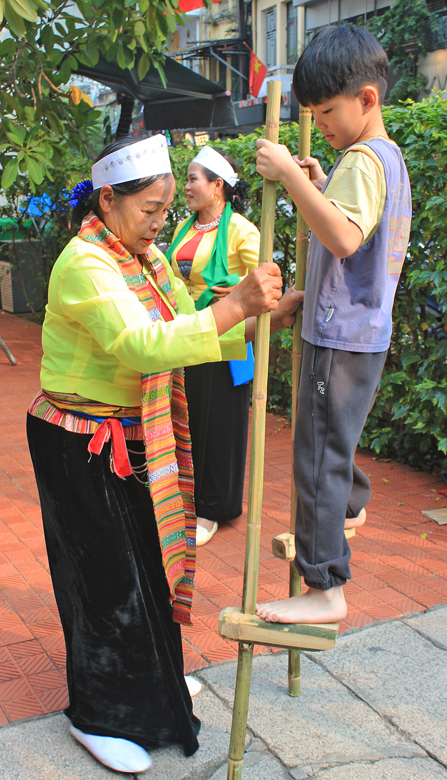 Khách trải nghiệm đi cà kheo (Ảnh: TITC)