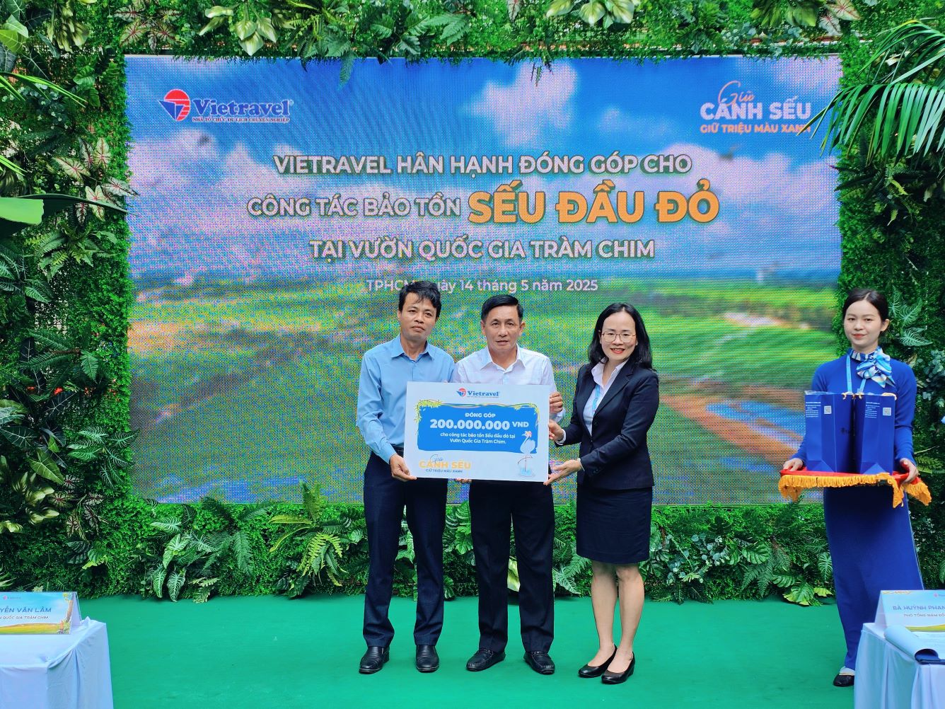 Vietravel trao tặng 200 triệu đồng cho Vườn Quốc gia Tràm Chim nhằm phục vụ các hoạt động hỗ trợ bảo tồn sinh thái trong khuôn khổ chiến dịch “Giữ cánh sếu - Giữ triệu màu xanh.