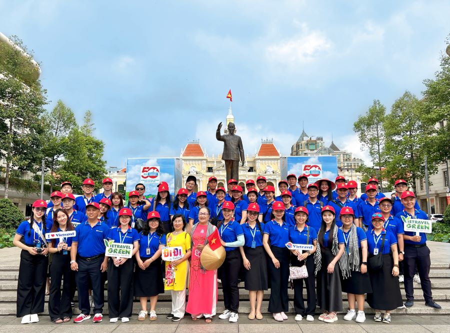 Vietravel tổ chức chương trình "Hành trình tự hào - 50 năm Đất nước trọn niềm vui", về thăm các địa danh lịch sử nổi tiếng của TP. HCM, dâng hoa, dâng hương tưởng niệm tại Bến Nhà Rồng, ghé thăm gia đình các cựu chiến binh.