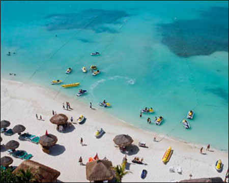 Biển Cancun nổi tiếng với bãi cát trắng xinh đẹp và dòng nước trong xanh. Du khách có thể tắm nắng hay hòa mình vào dòng nước biển mát lạnh và vui đùa thỏa thích cùng bạn bè, người thân.