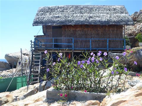 Đảo Hòn Sam toàn đá, rất ít đất nên hầu như ko trồng được cây gì lớn, nhưng anh em công nhân trên đảo vẫn cố gắng tạo nên một khung cảnh thân thiện, gần gũi như đất liền. Chúng ta sẽ lặng người trước giàn mướp xanh hoa vàng rực, với những khóm hoa tím lãng mạn…