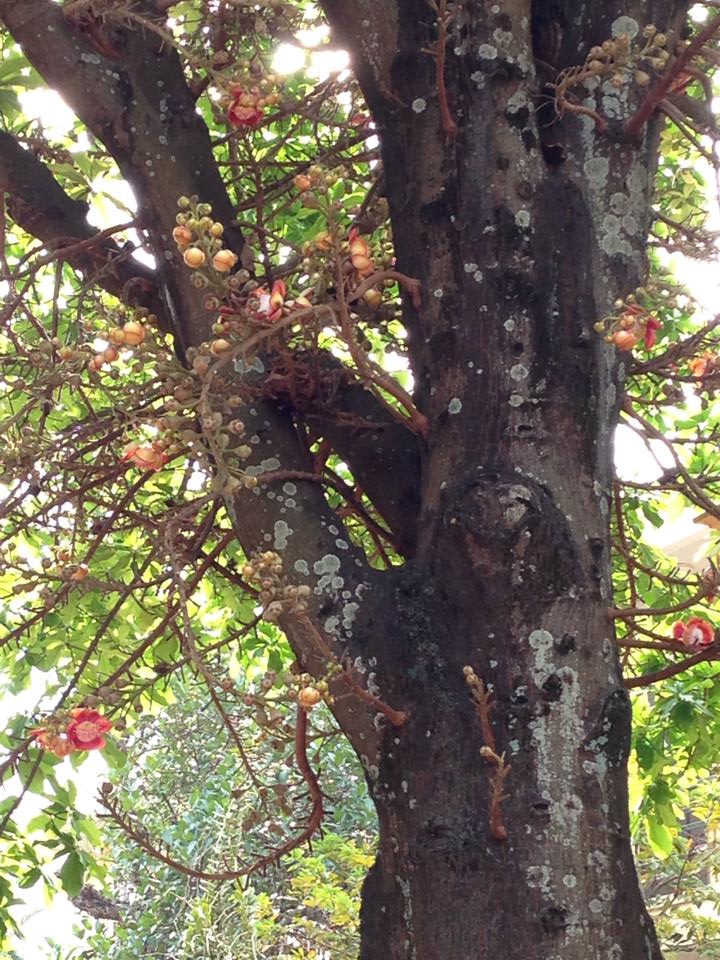 Khi kết trái, kích thước khá lớn khoảng 20 cm và có mùi hôi. Đến lúc trái chín tới mức mùi nồng nặc thì sẽ tự rụng và tách vỏ giải phóng hạt, gặp đất ẩm sẽ nảy mầm thành cây non.