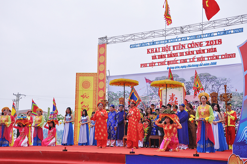 Tái hiện nghi lễ rước cụ thượng - nét đặc sắc, độc đáo của Lễ hội Tiên Công 2018 trong chương trình nghệ thuật với chủ đề “Về miền di sản văn hoá Tiên Công”. Ảnh: Phan Hằng