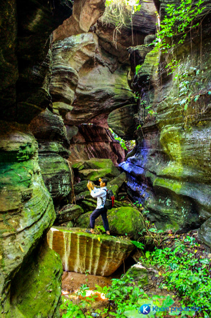 Xuống dưới đáy vực, di chuyển vào sâu khỏang 50m qua những khối đá to, hang thấp đã hiện ra sừng sững trước ngay phía trước mặt bạn.