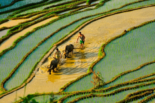 Khi nước được đưa vào vừa đủ, đồng bào dân tộc tiếp tục gieo hạt. Vài ngày sau, từng thửa ruộng xanh ngút tầm mắt bắt đầu hiện ra thì họ tháo nước cho lúa nảy mầm. Và khi những mầm non ấy bật lên vươn mình khỏi mặt nước, người dân lại dẫn nước trở về ruộng cho cây mạ lớn thêm chút nữa, chuẩn bị cho mùa cấy được đổ ải vào tháng 7. Đây cũng là thời điểm thứ hai đông đảo lữ khách tham quan ghé thăm Tây Bắc săn cho bằng được những bức ảnh đẹp.