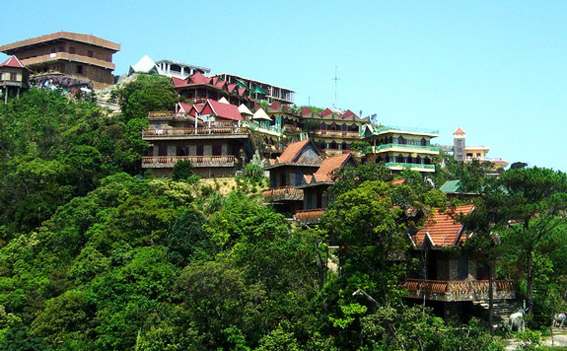 Càng lên cao sương càng dày, không gian càng mờ ảo, cái cảm giác rét run giữa mùa hè khiến du khách rùng mình thích thú khi dừng chân ở chặng cáp đầu tiên. Men theo con đường nhỏ có mái che và cửa kính để lên chặng cáp thứ hai, khách du lịch lại bị hút theo những cánh bướm nhỏ to, đủ sắc màu, đậu hững hờ trên những ô cửa kính lấm tấm hơi sương.