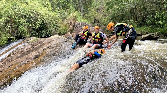 Du khách nước ngoài trải nghiệm tour vượt thác