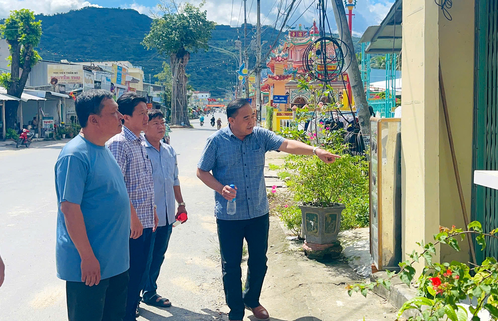 Lãnh đạo xã Ba Chúc vận động người dân bàn giao mặt bằng để mở rộng đường giao thông. Ảnh: Đức Toàn